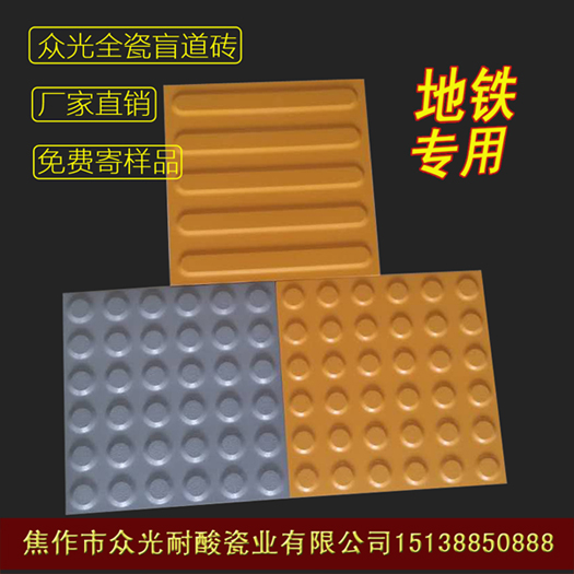 瓷質(zhì)盲道磚制造商焦作市眾光耐酸瓷業(yè)有限公司,生產(chǎn)制造的瓷質(zhì)盲道磚系列已被國(guó)家指定為地鐵高鐵站臺(tái)專用盲道磚鋪貼產(chǎn)品。眾光瓷業(yè)在短短幾年內(nèi)已成為國(guó)內(nèi)瓷質(zhì)盲道磚生產(chǎn)制造及銷售商,為什么眾光瓷質(zhì)盲道磚這么大受國(guó)內(nèi)大小高鐵地鐵站臺(tái)的歡迎呢?原因不置可否,那就是出眾的品質(zhì),俗話說人有人品,磚也有磚品,此話一點(diǎn)都不假,眾光瓷質(zhì)盲道磚就是憑借無(wú)可挑剔的品質(zhì)來(lái)立穩(wěn)腳跟、穩(wěn)占市場(chǎng)。