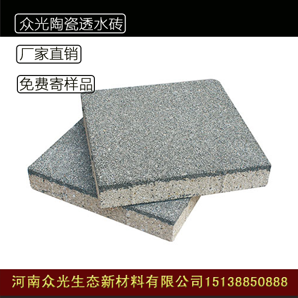 描 述:眾光陶瓷透水磚的各項性能 1、抗壓強度(單位MPa):4cm厚≥45MPa,6cm厚≥55MPa; 2、透水系數(單位cm/s)≥2.0×10~(-2)cm/s; 3、保水性(單位g...